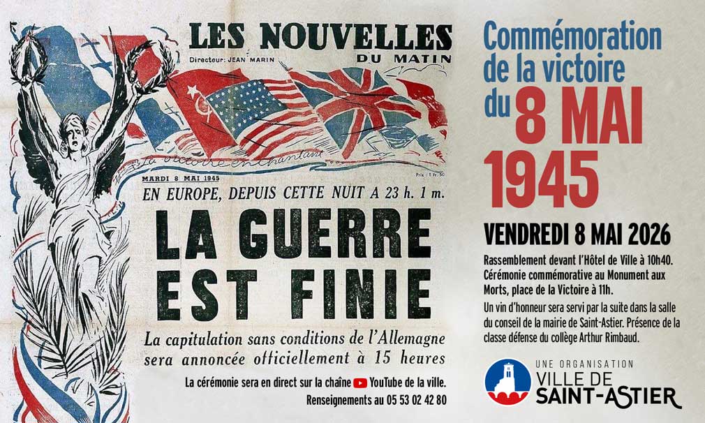 Vendredi 8 mai 2026 se déroulera la commémoration de la Victoire du 8 mai 1945.