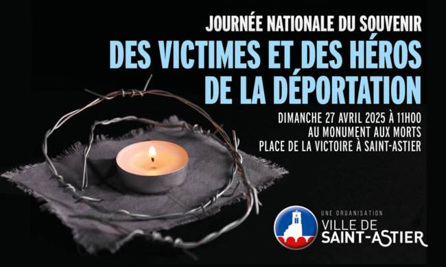 𝗗𝗶𝗺𝗮𝗻𝗰𝗵𝗲 𝟮𝟳 𝗮𝘃𝗿𝗶𝗹 𝟮𝟬𝟮𝟱 à 11h se déroulera la cérémonie pour la journée nationale du Souvenir des victimes et des héros de la Déportation.