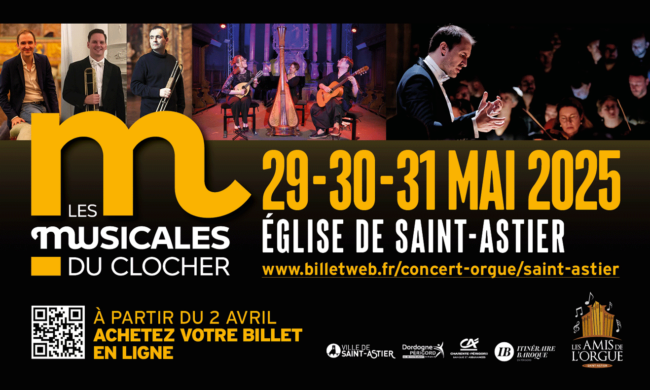 L’association Les Amis de l’Orgue de Saint-Astier organise sa première édition du festival les « Musicales du Clocher » les 29, 30 et 31 mai 2025 à l’Église de Saint-Astier.