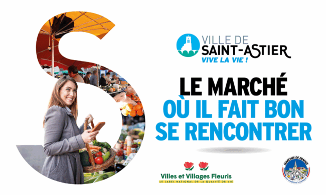 Retrouvez le marché de Saint-Astier le jeudi matin, dans tout le centre-ville !