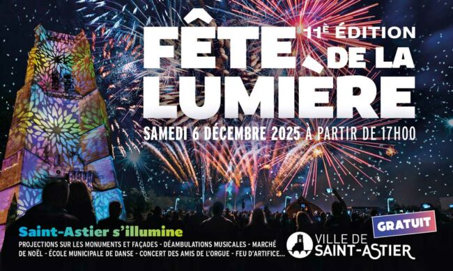 Samedi 6 décembre 2025 aura lieu la onzième édition de la fête de la Lumière à Saint-Astier !
