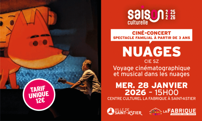 Retrouvez le spectacle familial « Nuages », mercredi 28 janvier à 15h au centre culturel La Fabrique de Saint-Astier !