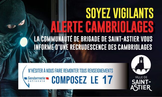 La gendarmerie constate une recrudescence des cambriolages dans le département. Soyez vigilants !
