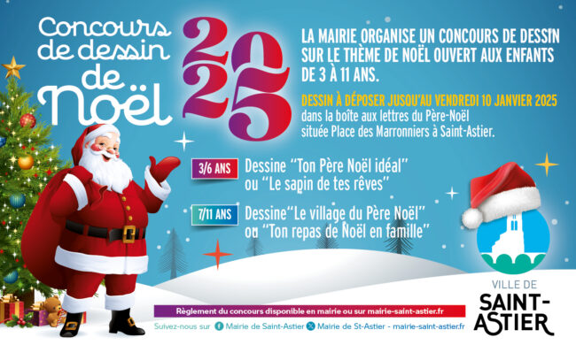 La mairie de Saint-Astier organise, une nouvelle fois, le concours de dessin sur le thème de Noël, ouvert aux enfants de 3 à 11 ans.