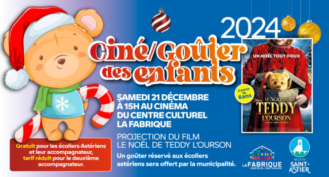 La municipalité de Saint-Astier offre une séance cinéma pour un film de Noël aux petites filles et petits garçons scolarisés à Saint-Astier.