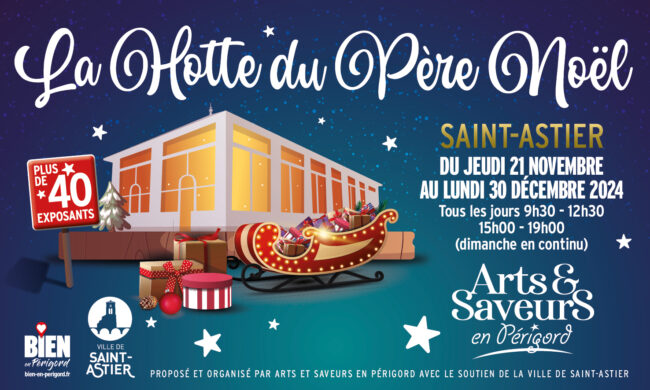 Retrouvez la hotte du père Noël sous la halle de Saint-Astier jusqu’au lundi 30 décembre 2024.