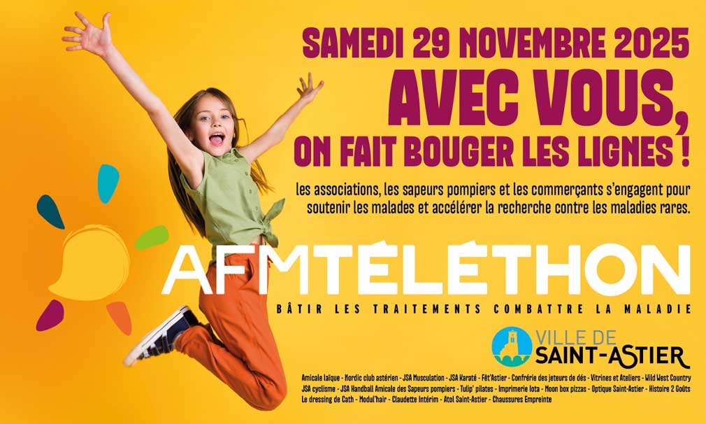 Retrouvez le Téléthon à Saint-Astier le samedi 29 novembre 2025 !