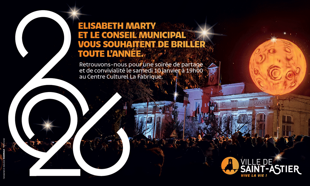 La cérémonie des vœux à la population aura lieu le samedi 10 janvier 2026 au centre culturel La Fabrique à 19h.