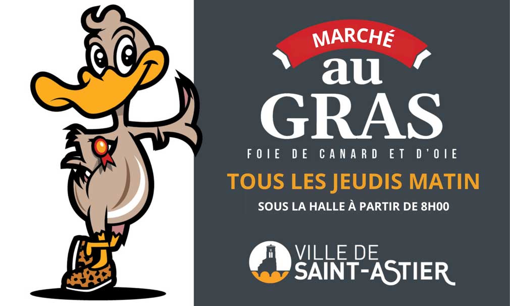 Retrouvez le marché au gras tous les jeudis matin à 8h sous la halle de Saint-Astier.