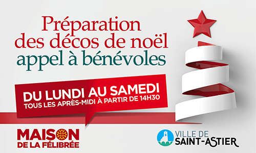Afin de décorer la ville de Saint-Astier, la municipalité recherche des bénévoles pour embellir la ville durant les fêtes de fin d’année.