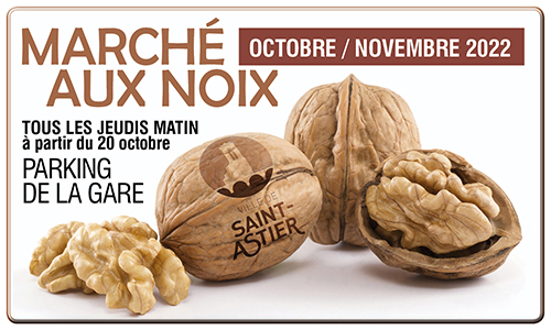 À partir du jeudi 20 octobre 2022, retrouvez le marché au noix à Saint-Astier, sur le parking de la Gare.