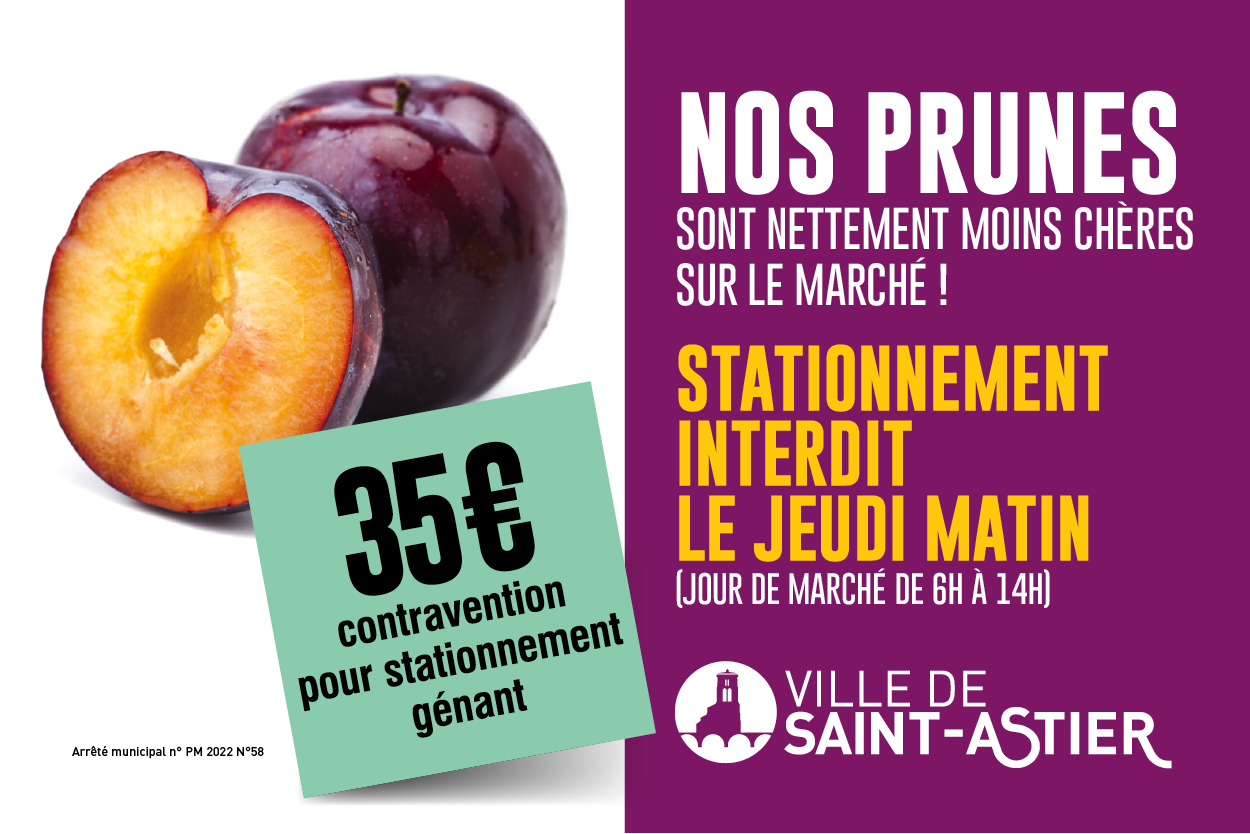 Attention les jeudis matin, jour de marché, le stationnent places des marronniers, de la République, Gambetta et du 14 juillet est interdit !